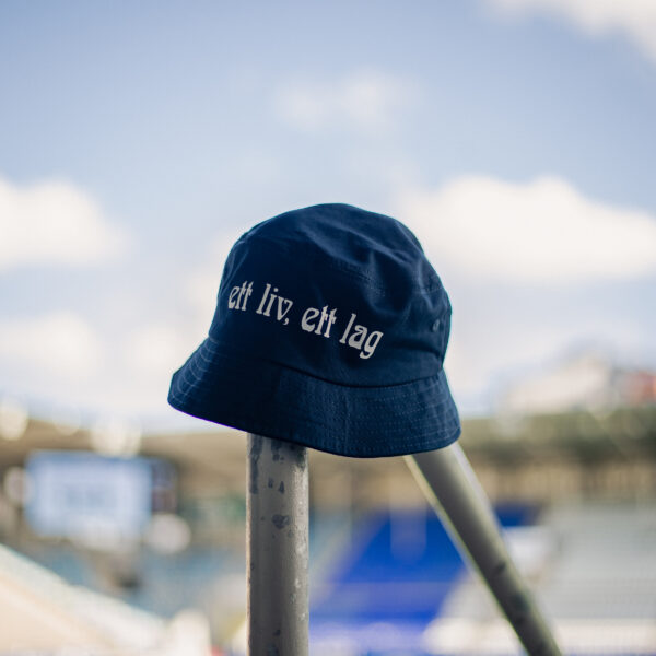• Bucket hat  med texten  ”Ett liv ett lag” tryckt på sidan.